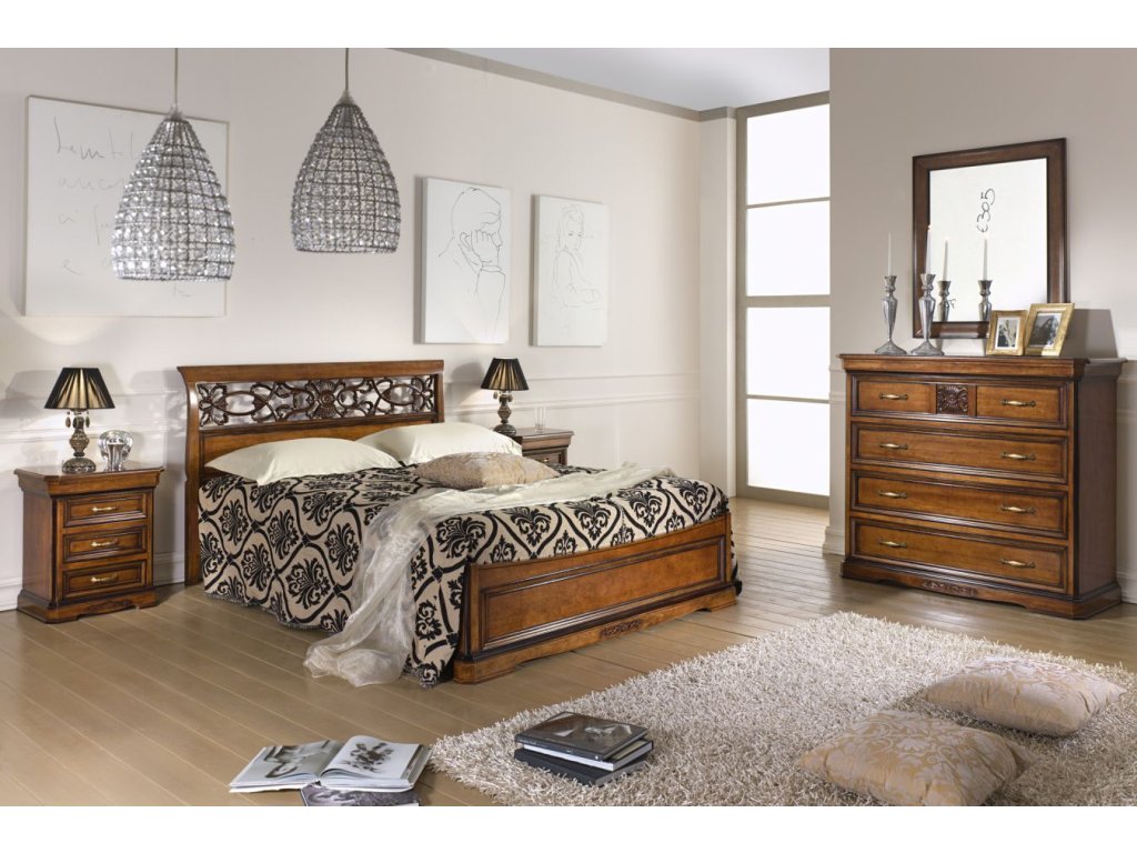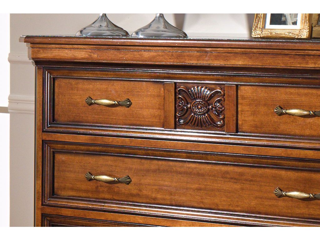 Stylová komoda se čtyřmi prostornými zásuvkami ve starožitném stylu. Horní není výklopná ta je pouze u modelu VAV1151. Zdobená vyřezávanými reliéfními prvky. Tento ojedinělý kus s propracovanými detaily je možné dodat v hnědém dekoru, barevných odstínech RAL i několika typech moření.