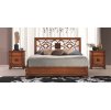 Moderní noční stolek se třemi zásuvkami v moderním stylu. Stojí na nízkých tvarovaných nožičkách a celkový vzhled doplňují designové úchytky a dekorativní ornament.