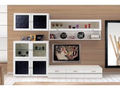Nábytková stěna š.236xv.225xhl.56cm s prosklenými skříňkami a TV stolkem.