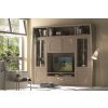 Moderní obývací stěna š.261xv.222xhl.43cm se skříňkami, vitrínami a otevřeným úložným prostorem.