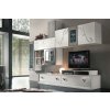 Obývací stěna šedo bílá š.310xv.215xhl.53cm se závěsnými skříňkami, policovým dílem a TV stolkem.