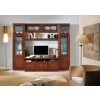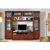 Obývací stěna tmavě hnědá š.277xv.225xhl.52cm se skříňkami, policí a TV stolkem.