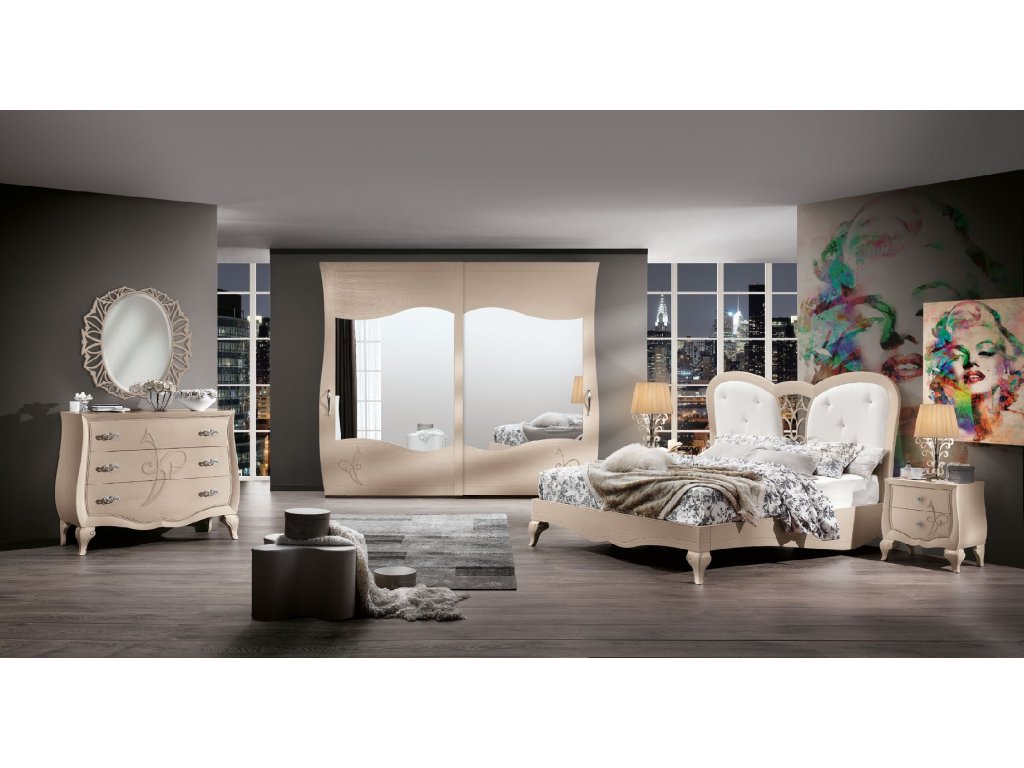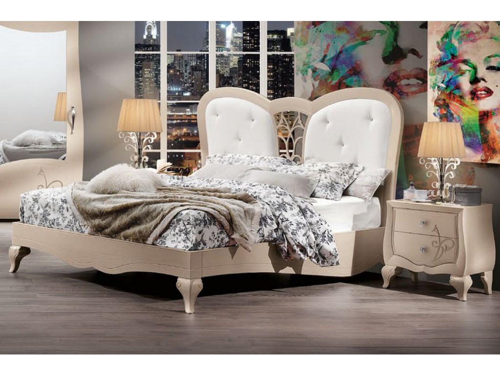 Postel 160x200 cm s čalouněným a vyřezávaným čelem v lehkém barokním stylu.
