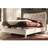 Postel 160x200 s úložným prostorem a čalouněným čelem ve stylu Chesterfield. Přední čelo je na nožičkách.