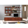Rustikální obývací stěna š.269xv.214xhl.52cm se závěsnými skříňkami, policemi a TV stolkem.