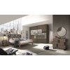 Skříň do ložnice s posuvnými dveřmi a zkosenými horizontálními zrcadly. Nabízí prostor na věšení na ramínka, otevřený úložný prostor a tři zásuvky. Vnější vzhled doplňují zdobné prvky s kruhovými tvary.